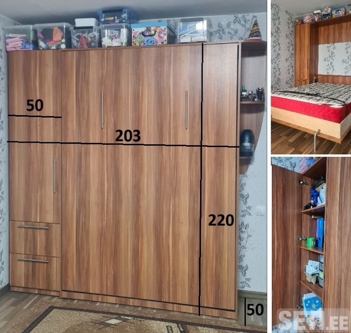 продам шкаф-кровать, в отличном состоянии, очень удобная, с матрасом, слева полки и два ящика выдвижных. спальное место 140 на 200. все размеры на фото. звоните 55979671