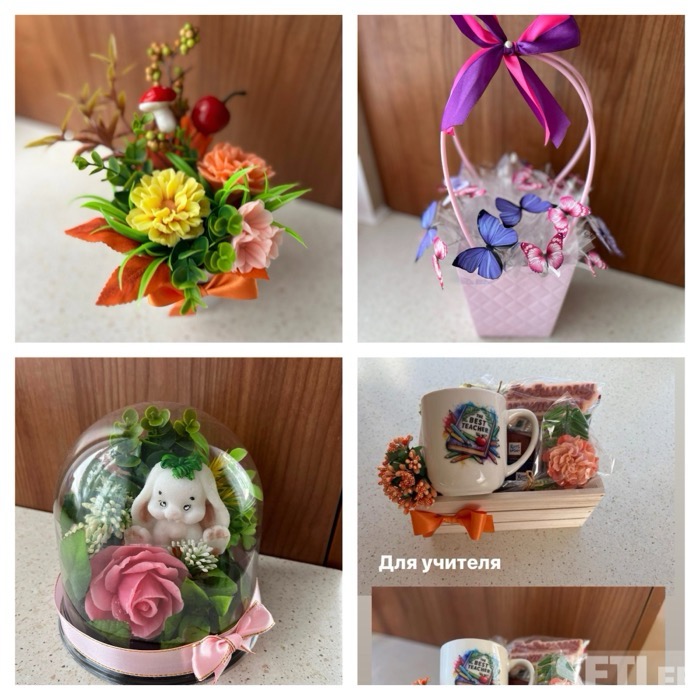 День Учителя👩🏫 5 октября 🍁 Большой выбор подарков 🎊 Композиции из мыла Мыльные букетики Букеты из бабочек Букеты из атласных роз Подарки (на русском и эстонском языке) Бесплатная доставка по Нарве Доставка по Эстонии