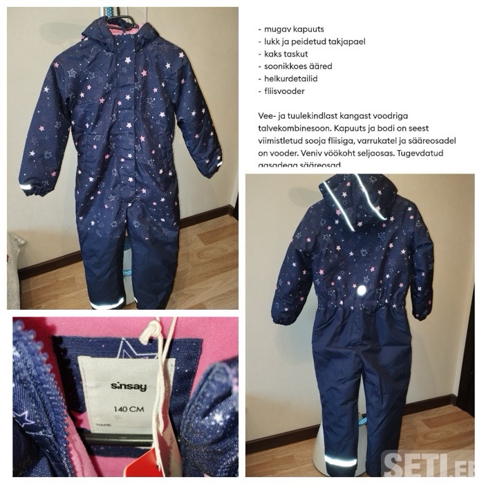 Новый зимний комбинезон sinsay, размер 134, Ог 71 см, талия 62см, комбинезон для зимы водо - ветронепроницаемая ткань. Цена 25 евро. Товар находиться в Нарве.
