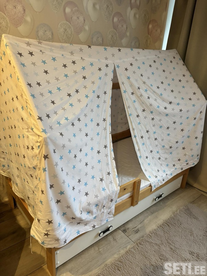 Продается кровать-домик в отличном состоянии. В комплект входит: кровать, матрас (1,8 х 0,8 м), балдахин, выдвижной ящик. Размер кровати 165х90 см. Высота - 140см. Самовывоз.