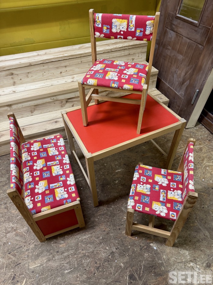 Деревянная мебель б/у для детей дошкольников ( 2-6 лет ). Диван и 2 стульчика с мягкой обивкой, стол. Крышка сиденья в диване поднимается и можно использовать как место для хранения игрушек. Замеры дивана: длина 57 см, ширина 26 см, высота 27 см. Стол: длина 60 см, ширина 43 см, высота 46 см.