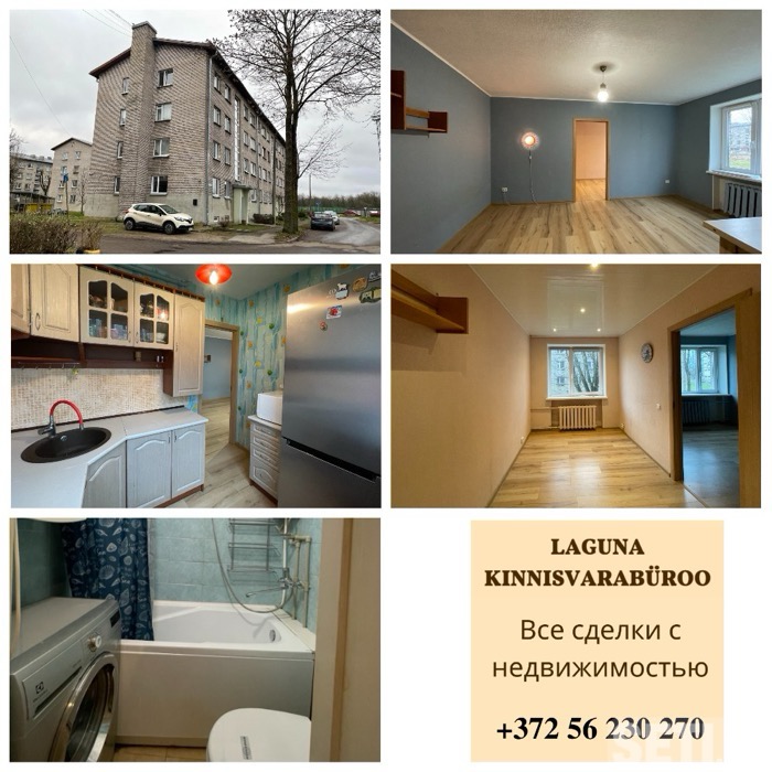 В продаже 2-комнатная квартира Masina tn 5, Narva linn, площадью 39,7 m2. 1 этаж /4-этажного, кирпичного дома. Cделан косметический ремонт. В квартире установлены пластиковые стекло пакеты , электро счетчик, автоматическая газовая колонка. В комнатах стены оклеены обоями, потолки частично сеникс под покраску и пластиковые панели, полы – настелен ламинат. Двери меж комнатные заменены, входной металлический блок. На кухне установлен встроенный кухонный гарнитур, газовая плита с духовкой, холодильник. Ванная комната и WC совмещены. Центральное отопление. Есть подвальное помещение. Действующее квартирное товарищество, парковка перед домом. В непосредственной близости автобусные остановки, Kerese keskus, магазин Rimi, аптека, кафе, Дом культуры Rugodiv, театр Vaba Lava, Липовая ямка, променад, Нарвский замок, Петровская площадь, государственная граница Эстония — Россия, автобусный и ЖД вокзал. Дополнительная информация : +372 56 230 270 , info@laguna.ee Показ возможен с 10 декабря 2025г
