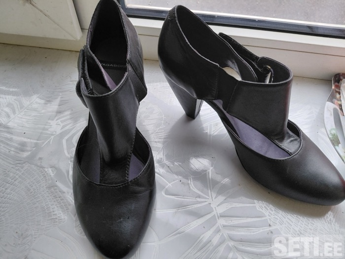 Продам красивые стильные туфли чёрного цвета, устойчивый каблук, высота 7, 5 см, изнутри нежно-сиреневого цвета. Фирма VAGABOND. 39 размер, идёт на 38 размер. Практически новые, одевала один раз дома. Состояние идеальное.