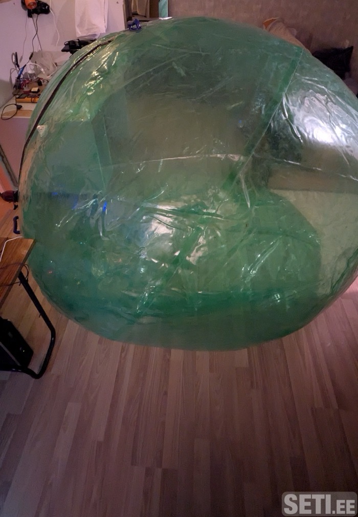 Материал плотный, визуально эффектный, в помещении смотрится как футуристичный объект. Использовался аккуратно, без порезов и проколов.