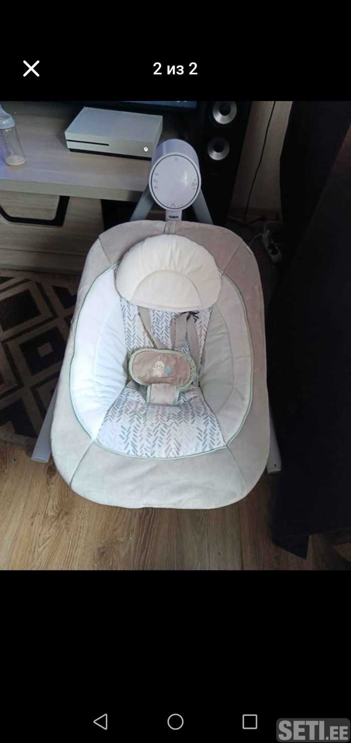 Детский шезлонг качается и вращается на 180° в трех направлениях.