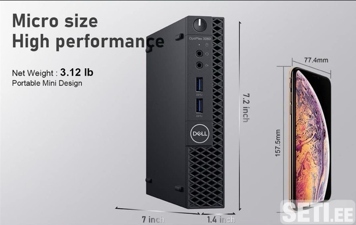 ell OptiPlex 3060 Micro Core i5 8th Gen,8500T Cores. 6 Threads. 6 Turbo 3.50 GHz 16GB RAM 256GB SSD SATA + SSD M2 256GB Intel UHD 630 4 x USB 3.0 2 x USB 2.0, LAN, Audio in/out, HDMI, Display port WiFi Bluetooth Windows 11 Блок питания