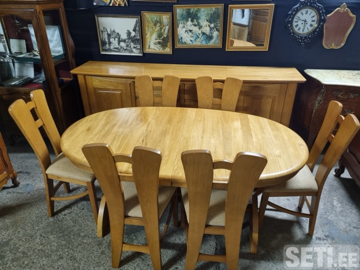 Здравствуйте. Мы продаём мебель и декор из Франции со склада в Нарве. В наличии столовый комплект из буфета,стола и шести стульев, современный дизайн, в отличном состоянии.