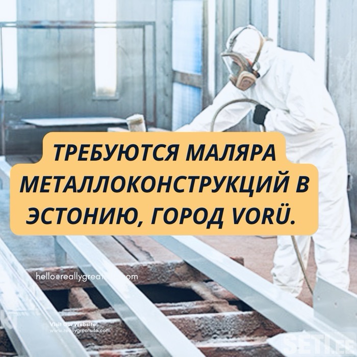 Требуются маляра металлоконструкций В Эстонию, город Vorü. Вакансия: Мы ищем квалифицированных маляров для работы с металлоконструкциями в г. Vorü, Эстония. Обязанности: Покраска металлических конструкций с использованием пульверизаторов. Условия: Оплата труда: 10€ в час чистыми. Проживание предоставляется, высчитывается из заработной платы 150 € в месяц. Требования: Предыдущий опыт работы не менее 1 года. Дополнительная информация: Viber: +37258312834 WhatsApp: +37258312834 Telegram +37258312834