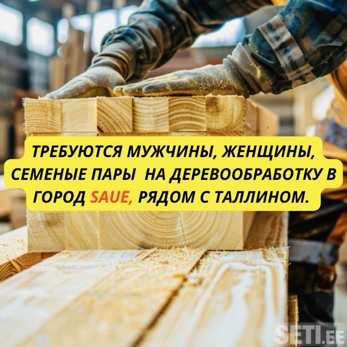 Требуются рабочие на деревообработку в Saue, рядом с Таллином. В связи с расширением производства в Saue Требуются мужчины, женщины, семейные пары. Обязанности: Работа на деревообрабатывающем заводе. Сортировка деталей. Работа на линии. Условия: Работа несложная. Официальное трудоустройство. Возможность работать от 8-12 часов в день, суббота по желанию рабочий. Возможны переработки по желанию. Почасовая оплата: от 7€ чистыми. Жильё предоставляется высчитывается из заработной платы 125 € в месяц. Авансы на период до получения полной зарплаты. Начать работу можно сразу, без опыта. Дополнительная информация и связь: Viber: +37258312834 WhatsApp +37258312834 Telegram +37258312834