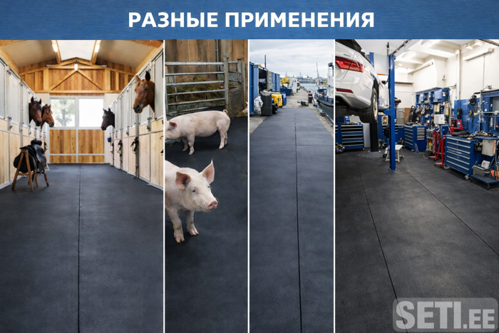 Прочная промышленная резина для пола в рулонах. Толщина 16 м, ширина полос ~1350—1500 мм, в рулоне 25 погонных метров, или 37м/2. Легкое решение для облагораживания парковок, пространств между теплицами, заездов на участок, внутренних дорожек. Не нужно косить траву. Она не растает там, где лежит резиновая дорожка. 1. не скользит 2. легко моется 3. не боится влаги и масла 4. защищает бетон 5. на любую поверхность