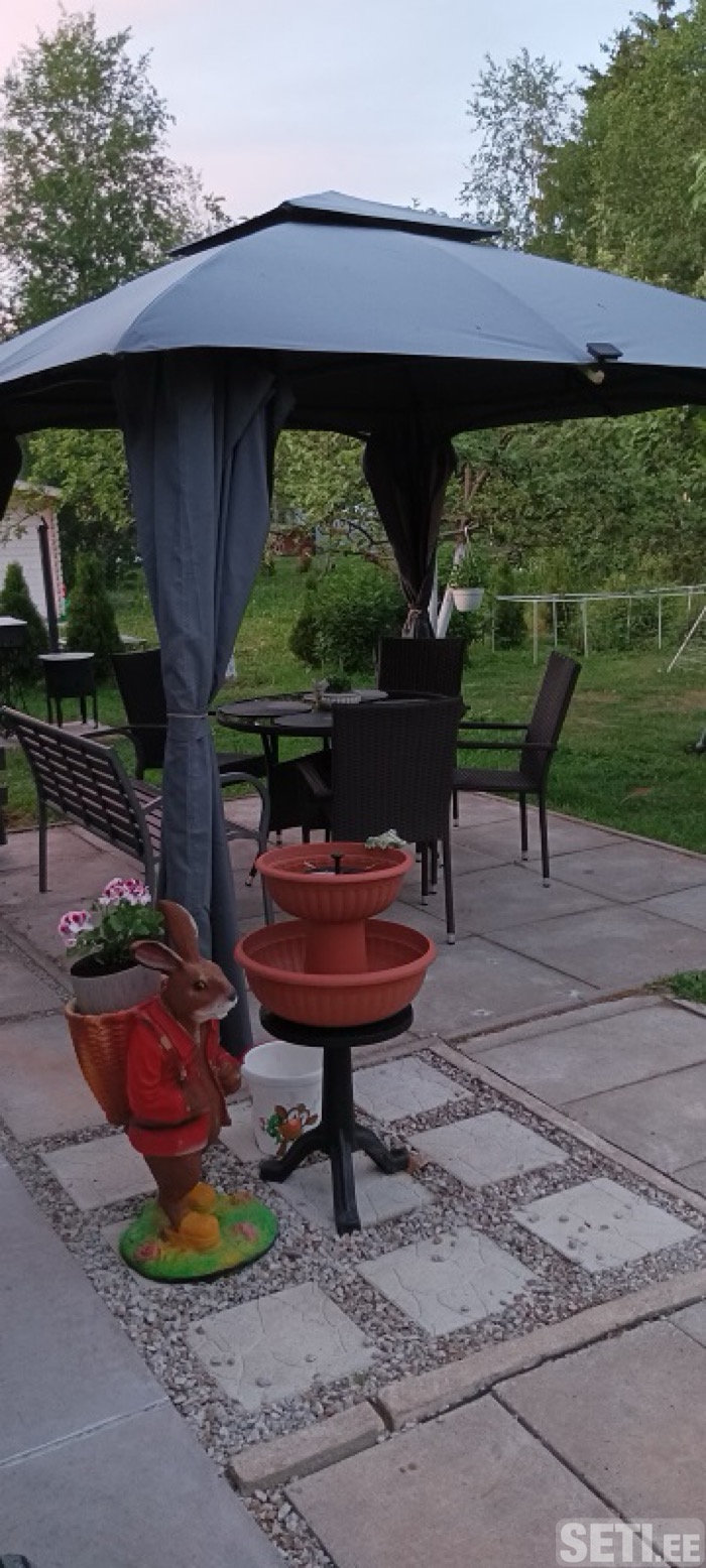 Продается дачная беседка , б/у в использовании 2 сезона. Проверена на прочность дождями и ветром. Каркас в отличном состоянии , собирается и разбирается за 20 минут. В комплекте маскитные занавески и занавески от дождя и ветра ,все молнии исправны, повреждений нет ,Крыша из непромокаемой ткани , конечно уже подвыгорел цвет от солнца но это не мешает эксплуатации. Прекрасный вариант для тех кто ,хочет быстро и без лишних проблем поставить на участке и наслаждаться отдыхом . цена 120 евро