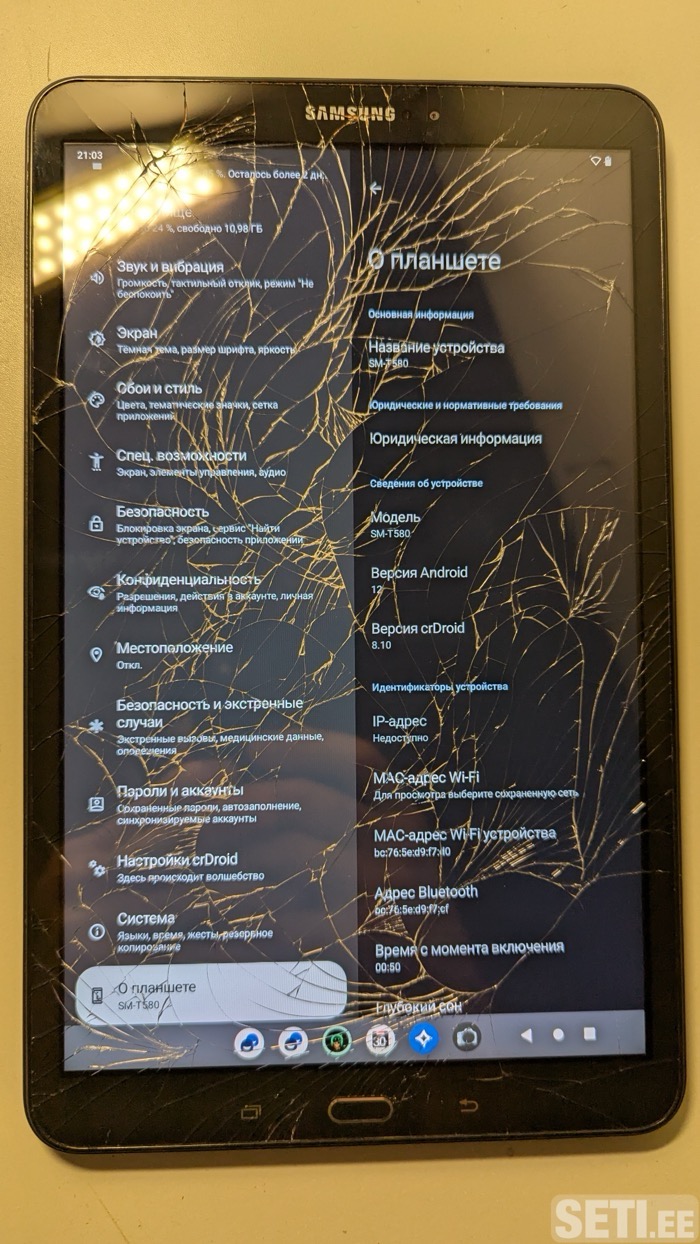 ⚠️ Экран с трещинами (видно на фото), но сенсор полностью работает и не мешает использованию.