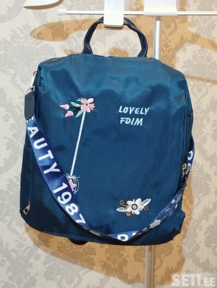 Многофункциональная женская сумка с цветами, которую можно носить двумя способами - как сумку через плечо или как рюкзак. Есть боковые карманы. Внутри есть один карман на молнии. Размеры: Высота: 32 см, ширина: 30 см, ширина 13 см. Цена 8 евро.