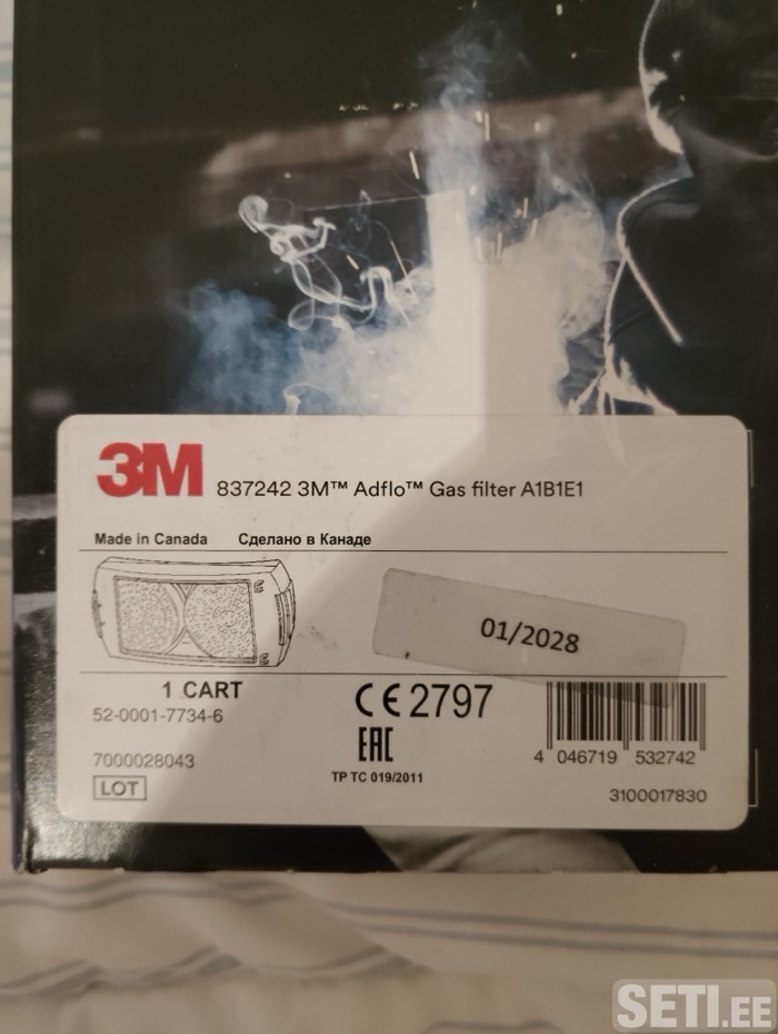 Новый газовый фильтр 3M Adflo A1B1E1 до 2028г. На фото коробка с фильтром 3M Adflo Gas Filter A1B1E1 837242 для системы сварочной защиты 3M Speedglas Adflo Powered Air Respirator. Это газовый фильтр для сварочного респиратора. Он ставится в систему Adflo, которая подаёт очищенный воздух в сварочную маску. От чего защищает Фильтр класса A1B1E1 защищает от: A1 — органических газов и растворителей B1 — неорганических газов E1 — кислотных газов Используется при: сварке резке металла шлифовке работе с химическими парами. новый фильтр 3M Adflo A1B1E1 На коробке срок 01 / 2028 фильтр новый и ещё долго годный.