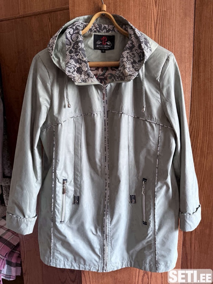 Продам б/у куртку удлиненную для осени-весны в хорошем состоянии. Ткань качественная плащевая. Цвет бирюза. Фото не отображает естественного цвета. Размер 48 - 50. Стала мала. Цена продажи 15 евро.