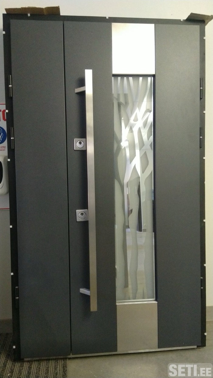 1. Коробка: 110 мм, металл 1,5 мм (наличники MDF + металл 1,0 мм, ламинированный плёнкой) 2. Створка: Z-образная, металл 1,5 мм 3. Дверное полотно: толщина 84 мм, металл 1,0 мм 4. Наполнитель: минеральная вата 5. Внешнее покрытие: металл 1,0 мм, ламинированный плёнкой 6. Внутреннее покрытие: MDF 12 мм 7. Уплотнение: двойное + магнитный прижим* (на притворе полуторки - одинарное) 8. Шумоизоляция: данные дополняются 9. Противосъёмные штыри: 3 шт 10. Петли на подшипниках 11. Накладка на порог из н/ж стали 12. Основной замок**: цилиндровый KALE 13. Дополнительный замок**: сувальдный KALE 14. Размеры: 1170*2050 Правая Пескоструйный рисунок на стекле в цене!