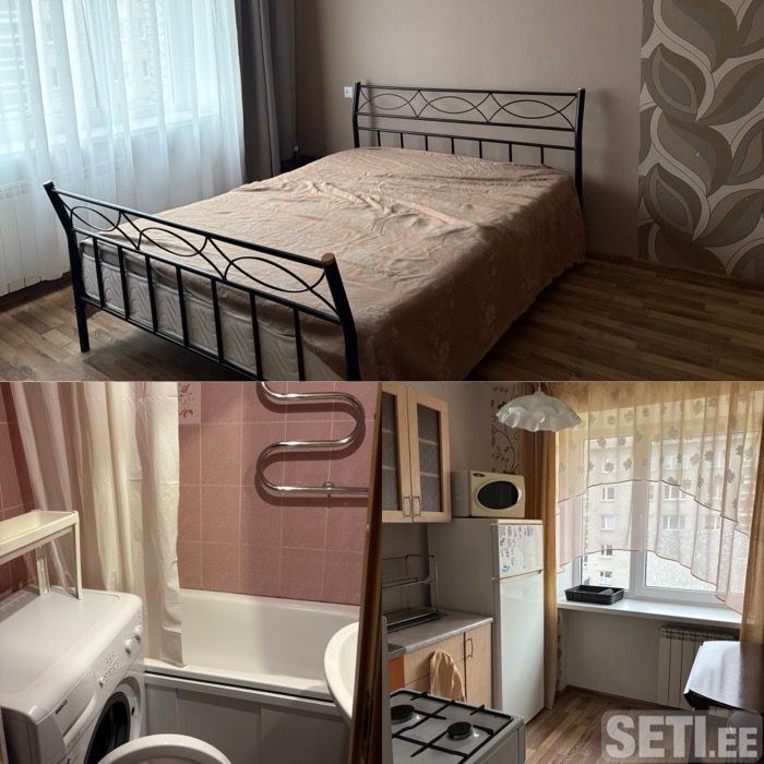 Väike korter ideaalne ühele või paarile. Sees leiate kõik elamiseks vajalik: lai voodi, riietus kappid, sisestatud vannituba koos pesumasinaga, ja sisustatud köök. Parkimine hoovis kuid kindlat kohta ei paku. Маленькая уютная квартира идеально подойдет для одного человека или пары. Есть все необходимое: широкая кровать, шкафы для одежды, обставленные ванная комната и кухня. Парковка во дворе, но без выделенного конкретного места.