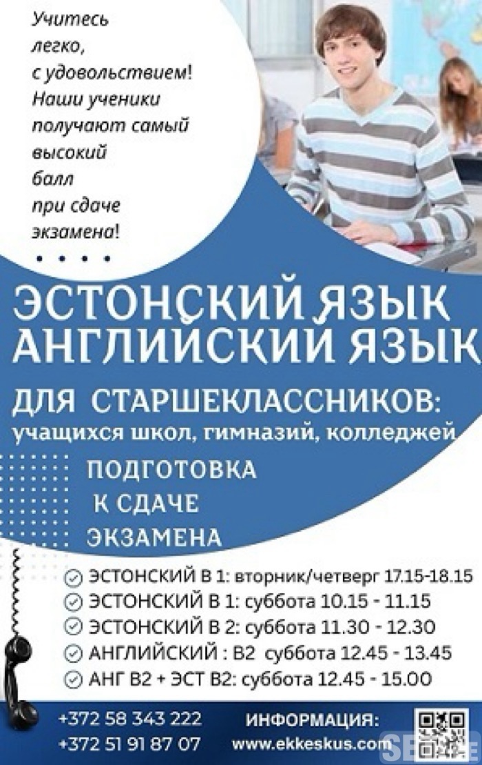 Приглашаем школьников 9 - 12 классов, учащихся вечерних школ, колледжей на курсы эстонского, английского языка для подготовки к сдаче экзамена!