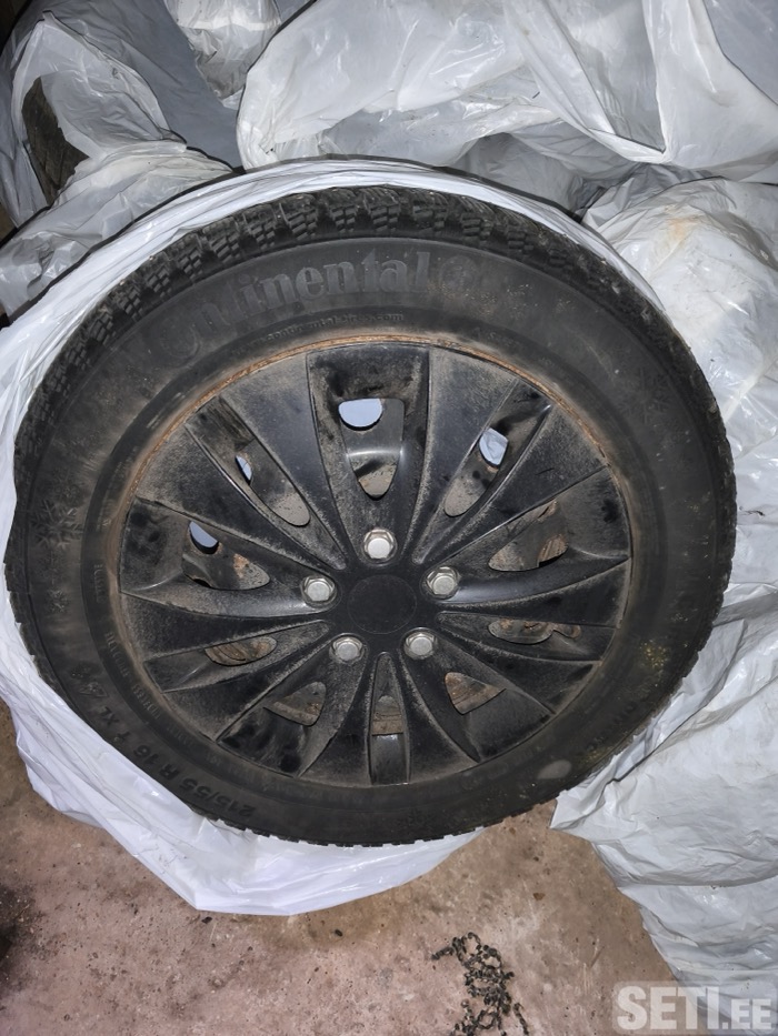continetal. резина в очень хорошем состоянии. глубина протектора 6мм. шипованая. диски железные, хранится год. давление на месте. 4 шт комплект за 70 евро.