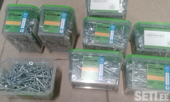 Шурупы подереву 5*50=250шт стоит 7 евро А 6*100=100шт стоят 7 евро.Мы находимсяTallinna mnt 6
