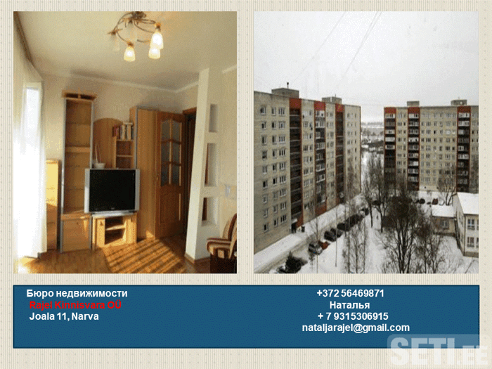 Сдам довольно современную, просторную 1- комнатную квартиру с большой лоджией. Квартира расположена в 9- этажном доме района Кренгольм, неподалеку от Ледового холла. Удобная мебель, бытовая техника, вместительные встроенные шкафы для хранения вещей. Возможна регистрация. Цена аренды 120 евро в месяц.