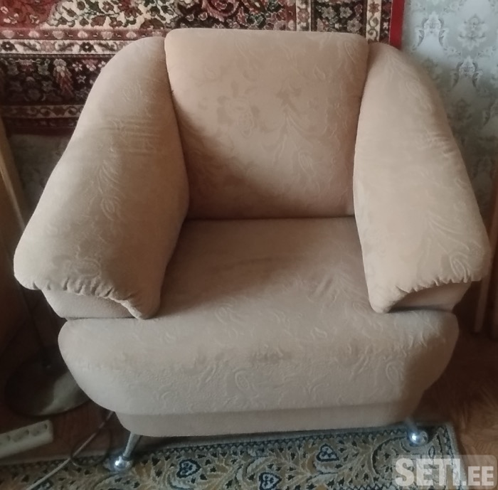 Продаются два удобных мягких кресла светлого бежевого цвета. Кресла чистые, ухоженные, без повреждений и неприятных запахов. Обивка целая, ножки металлические, устойчивые. Подойдут для гостиной, спальни, кабинета или дачи. Размер примерно 1х1 м. Количество: 2 шт. Состояние: хорошее Причина продажи: не используются Цена: 99 евро за оба (или 59 евро за одно). При покупке двух кресел - в подарок журнальный прочный столик на колесах.