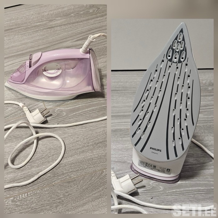 Очень мало был в использовании! Керамическая подошва — хорошо скользит и не прилипает. Мощность 2000–2400 Вт, быстро нагревается. Есть пар и паровой удар, удобен для повседневной глажки. Работает исправно, без запахов, без протечек. Цена 30 евро