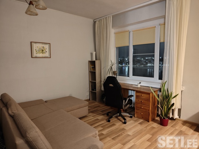 Сдаётся 1-комнатная квартира в старом городе Нарва с красивым видом на реку. В кухне стол, стулья, кухонная мебель, плита, новый холодильник, микроволновка. Просторная комната, где есть кровать, угловой диван, шкаф, стол, стул. Просторный туалет, совмещённый с ванной (унитаз, умывальник, ванна, стиральная машина). Квартира очень просторная. Есть интернет.