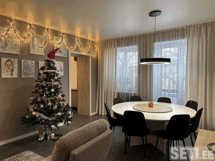 🔥 Преимущества квартиры: Сауна прямо в квартире — редкое и очень ценное преимущество Центральное отопление, новые радиаторы Камин — для уюта и особой атмосферы Бойлер — горячая вода круглый год Новая электропроводка и сантехника Натяжные потолки, новые полы Раздельный санузел и просторная ванная с сауной Окна — стеклопакеты Электроплита Гардеробная — редкость и большой плюс Новая металлическая входная дверь Домофон 🏢 Дом: Кирпичный дом 1953 года, крепкий и тёплый, утепленная крыша, под управлением квартирного товарищества.
