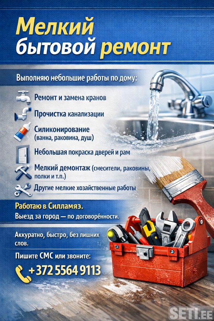 Аккуратно, быстро, без лишних слов. 📱 Пишите СМС или звоните: +372 55649113