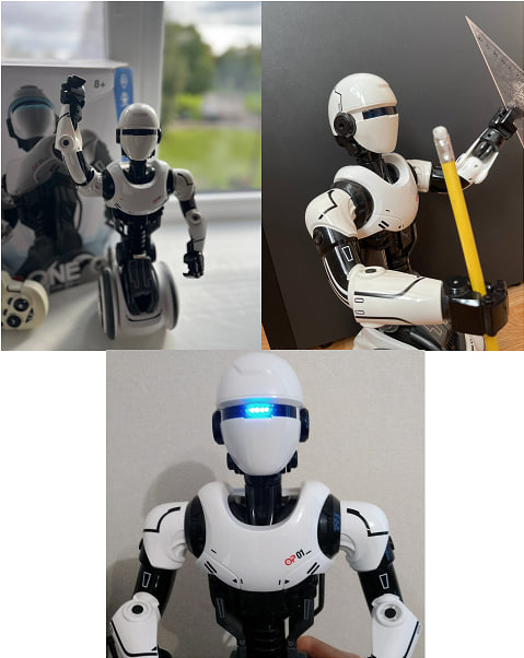Продам программируемого робота - андроида. Он двигается во всех направлениях , вращается вокруг своей оси , захватывает и переносит небольшие предметы , глаза со светодиодной подсветкой , танцует , обладает функциями передачи окружающего звука, воспроизводит голосовые сообщения в реальном времени и в записи , может изменять голос , программируемый , что способствует развитию творчества. Управляется пультом , активируется уже при включении кнопки на самом роботе.