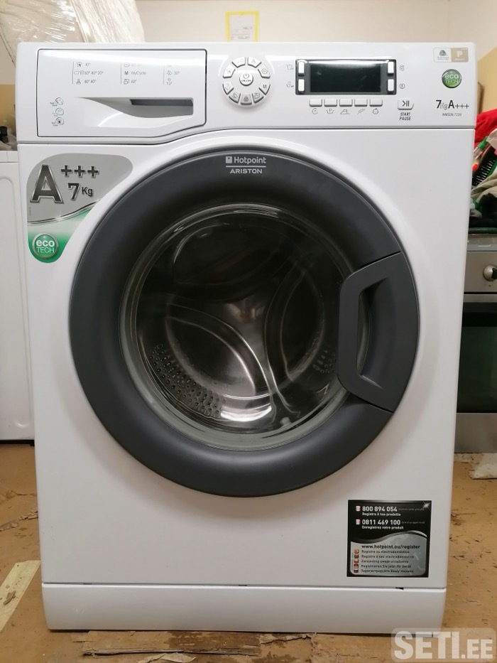 Стиральную машинку Ariston Hotpoint с боковой загрузкой на 7 кг. Ширина 42 см. Машинка с дефектом. Все режимы работают кроме отжима. Не отжимает ( барабан крутится как при обычной стирке, а обороты не набирает) Т. 554 3328