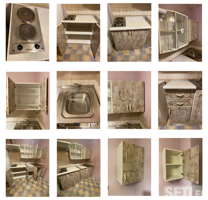 В комплекте: - раковина с краном - электрическая плита на 2 конфорки - 3 настенных шкафчика - 3 напольных шкафа Размеры (высота × ширина × глубина): Настенные шкафы: 1. Шкаф для посуды над раковиной - 60,5 × 60,5 × 33 см (36 см с ручками) 2. Шкаф обычный - 60,5 × 40 × 33 см (36 см с ручками) 3. Шкаф со стеклянными дверцами и декоративными часами - 60,5 × 80 × 41 см Напольные шкафы: 4. Шкаф с раковиной - высота шкафа 85 см + кран 20 см, ширина 60 см, глубина 60,5 см (глубина раковины 14 см) 5. Шкаф рядом с раковиной - 85 × 40 × 60,5 см 6. Шкаф с плитой - 85 × 80 × 60,5 см Плита: высота 5 см, ширина 29 см, глубина 51 см (2 конфорки) Самовывоз. Если нужно - могу отправить дополнительные фото. +372 58378573 Телефон : 58378573 Город : Narva