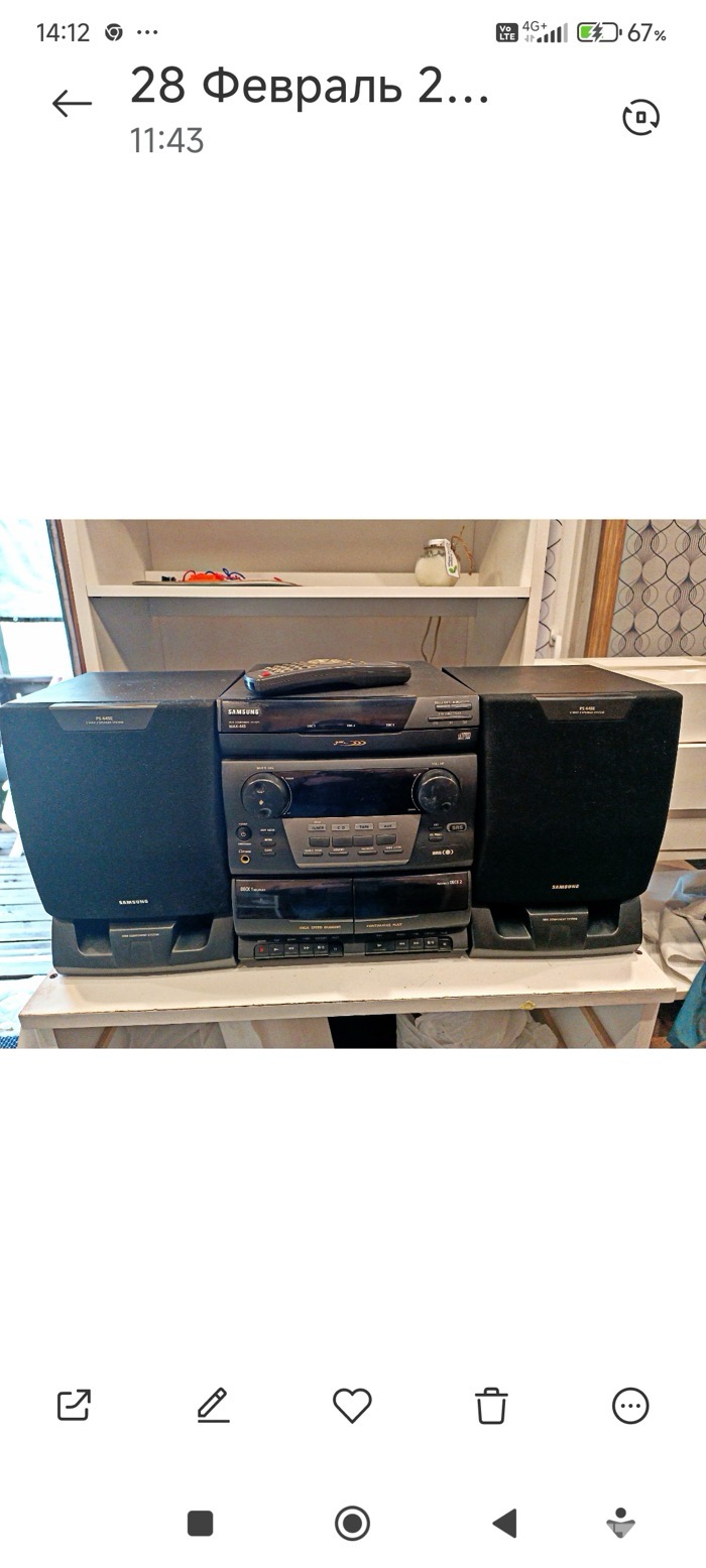 Продам музыкальный центр Samsung. Отлично подойдёт для дачи. Всё работает кроме CD, перестал читать диски, радио, магнитофон, проигрыватель виниловых пластинок работает как надо. Вопросы по т 56469798.ц.45е