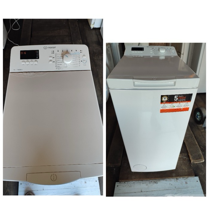Стиральная машина Indesit с верхней загрузкой до 6 кг. Хорошее рабочее состояние, имеется небольшое место коррозии. Размер 60 на 40 см Есть возможность доставки и подключения 54830130