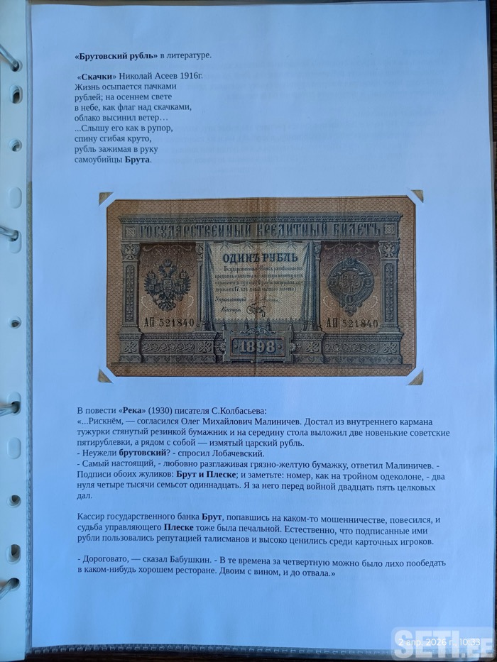 Стал талисманом любителей азартных игр с 1914 года. Характерная черта брутовского рубля — это его погнутость крест-накрест (если талисман хранился в бумажнике, он обычно складывался вчетверо).