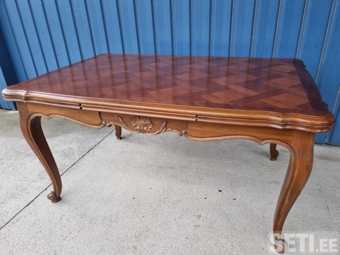 Здравствуйте Мы продаём винтажнуую мебель и декор из Франции со склада в Нарве. В наличии обеденный стол из массива черешни, в комплекте так же идут два удлинителя, в хорошем состоянии.