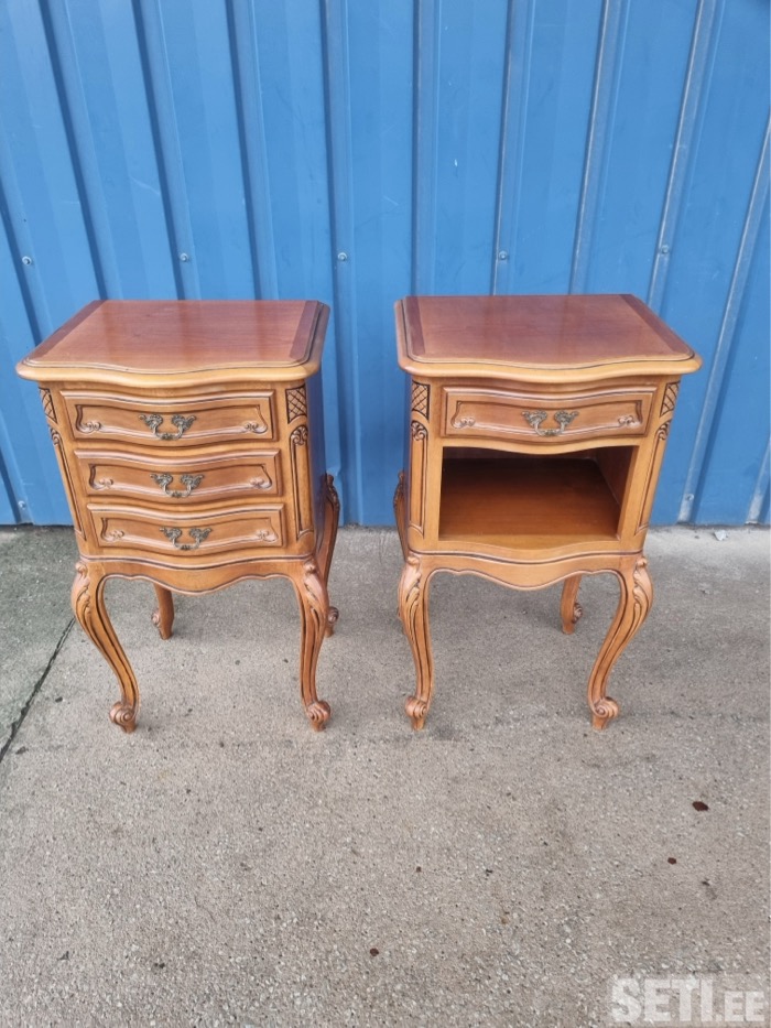 Здравствуйте Мы продаём винтажнуую мебель и декор из Франции со склада в Нарве. В наличии прикроватные тумбы из натурального дерева, стиль "маркетри", в хорошем состоянии.